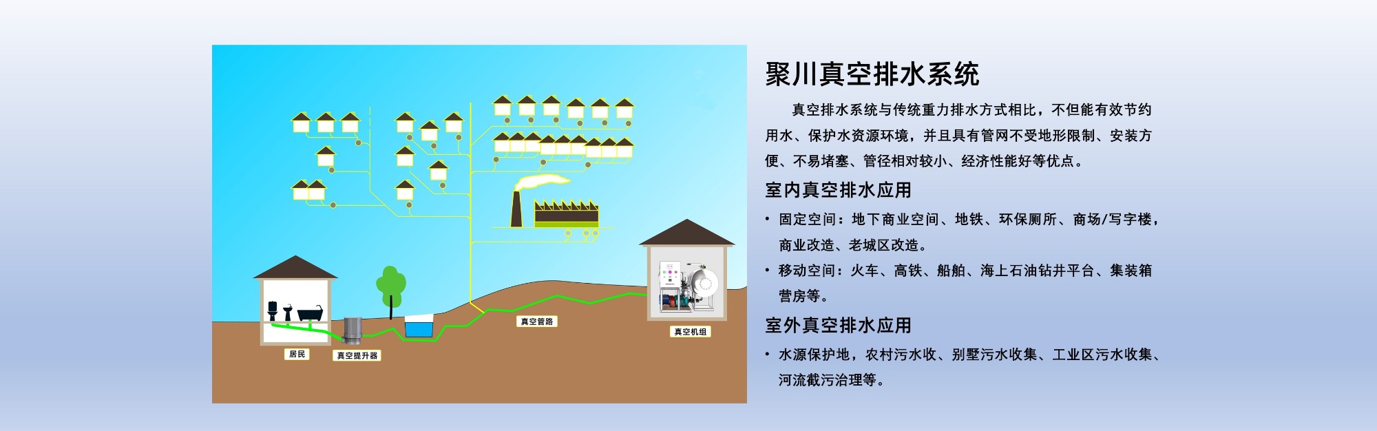 聚川環(huán)保成立于2006年8月,總部位于中國(guó)浙江杭州,國(guó)內(nèi)新三板上市企業(yè),國(guó)家高新技術(shù)企業(yè)。努力推進(jìn)真空排水系統(tǒng)在中國(guó)的發(fā)展和應(yīng)用,聚川致力于創(chuàng)新型排水設(shè)備和系統(tǒng)研發(fā)與市場(chǎng)推廣,主要產(chǎn)品有室外真空排水系統(tǒng)、室內(nèi)真空排水系統(tǒng)、大型建筑真空收集系統(tǒng)、高效節(jié)水微型水循環(huán)環(huán)保廁所系統(tǒng)、真空馬桶、凸輪式密閉泵站系統(tǒng)、低液位氣壓排水系統(tǒng)、負(fù)壓垃圾收集系統(tǒng),城市污水處理裝置等。